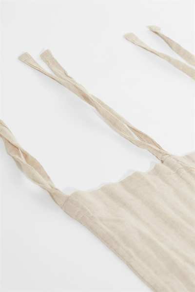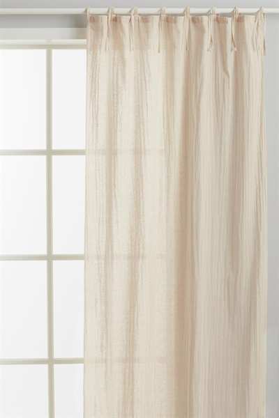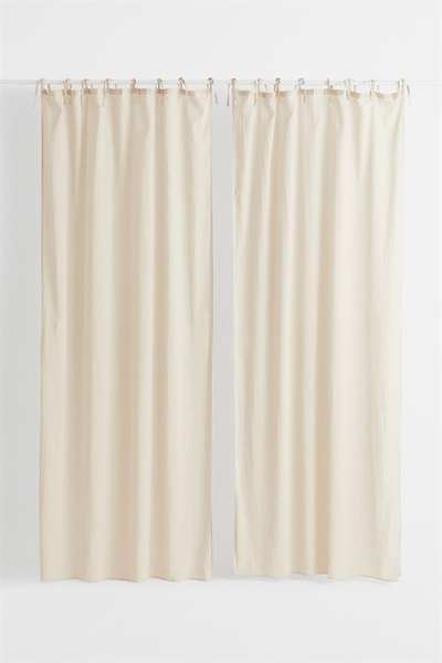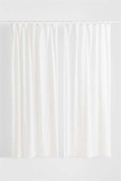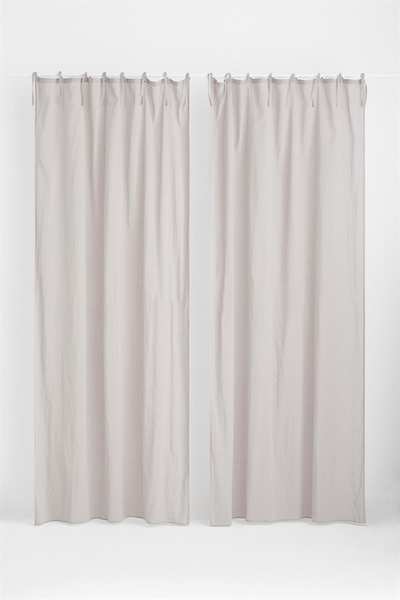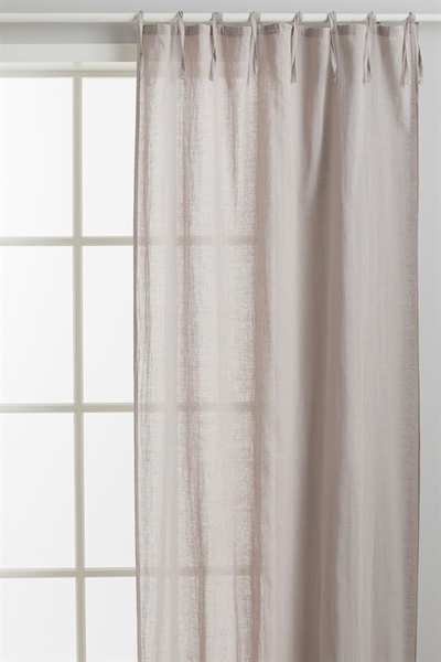 Два шарфа-гардины из воздушной ткани из смеси хлопка и льна с завязками для подвешивания. Включает подшивочную ленту для легкой подгибки.
