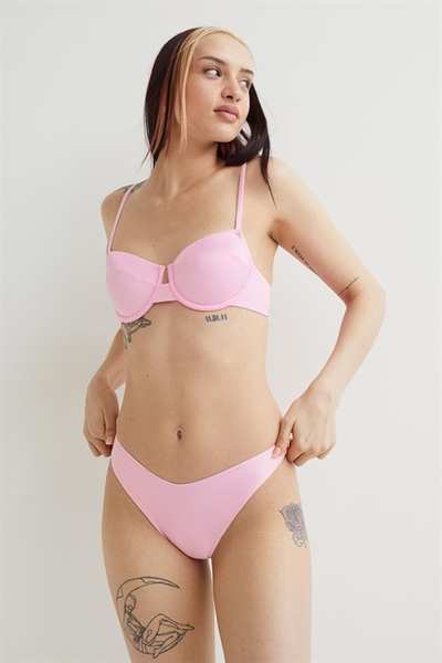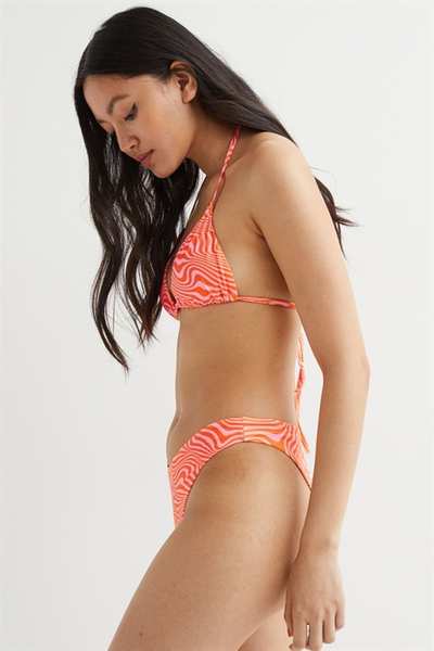 Плавки бикини на подкладке с V-образным вырезом спереди. Высокий вырез сзади.