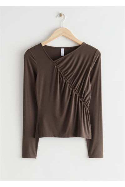 Облегающий топ с длинными рукавами, асимметричным вырезом горловины и рюшами. Длина топа: 51 см (ЕС 36/Великобритания 10/США 4)
