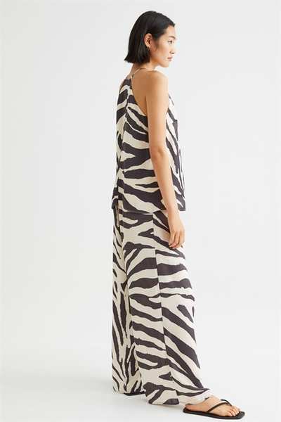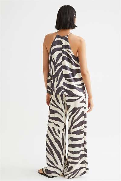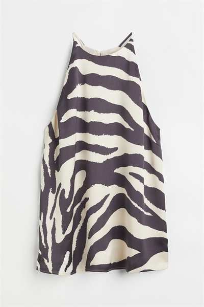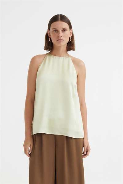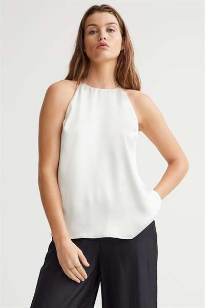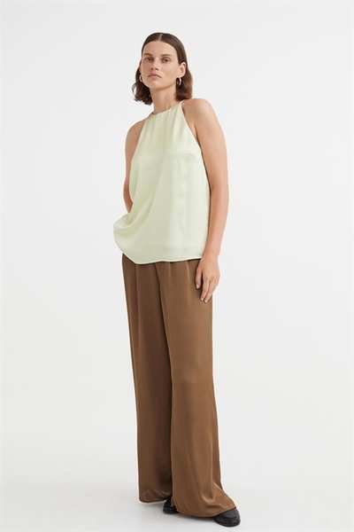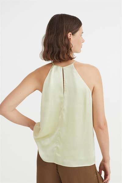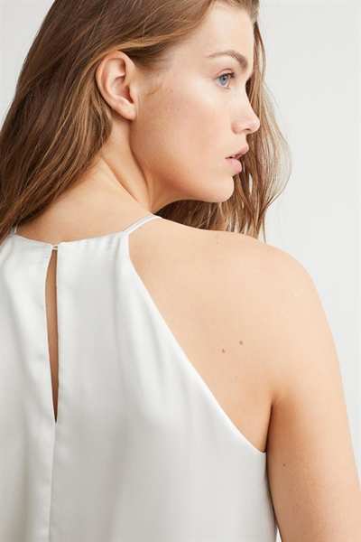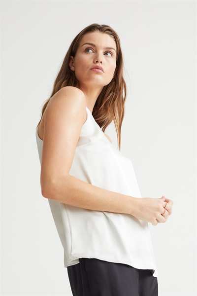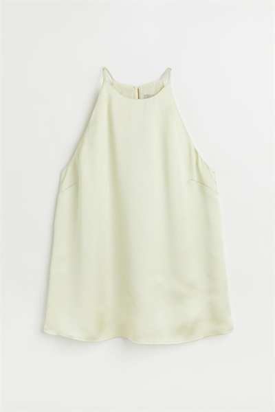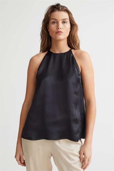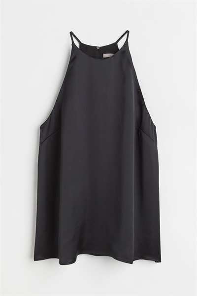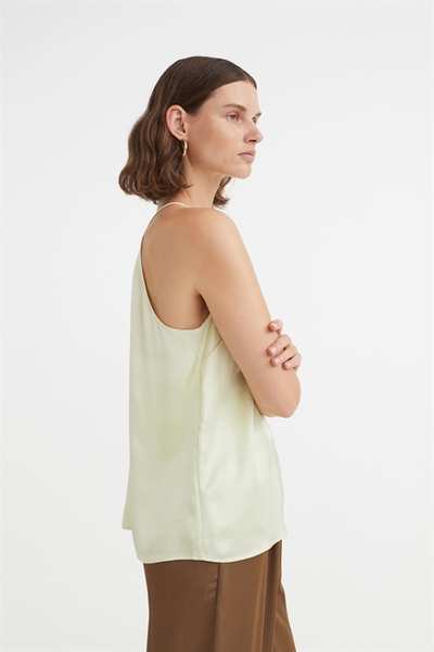 Атласный топ А-силуэта свободного кроя. Этот топ имеет облегающую посадку сверху, бретельки-спагетти и шлицу сзади на потайной пуговице.