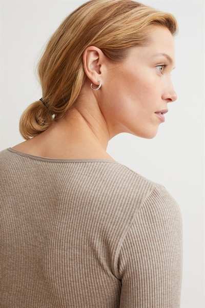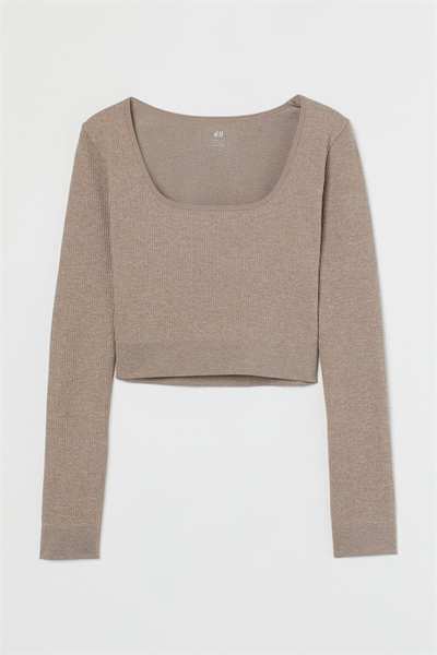 Облегающая укороченная рубашка из трикотажа в рубчик с практически бесшовной конструкцией, обеспечивающей комфорт. С квадратным вырезом горловины и длинными рукавами.