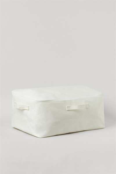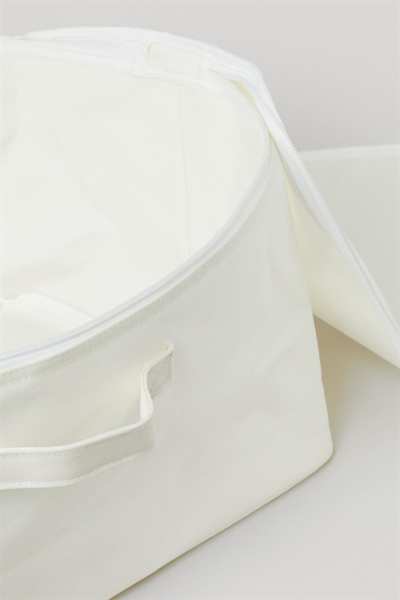 Большая корзина для хранения из небеленого хлопкового твила с боковыми ручками и крышкой на молнии. Ширина 57 см. Высота 20см. Длина 37см.