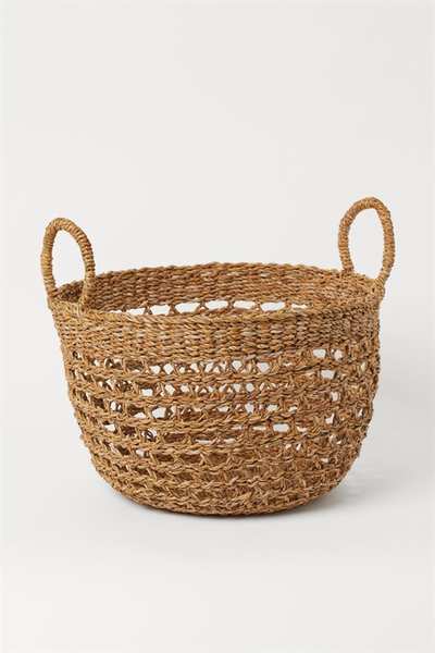 Декоративная и практичная корзина для хранения из плетеной морской травы с двумя ручками вверху. Высота 30см. Диаметр 47см.