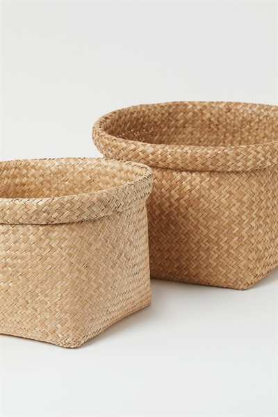 Большая корзина для хранения из плетеной морской травы с загнутым краем. Диаметр выше 35 см. Высота 25см.