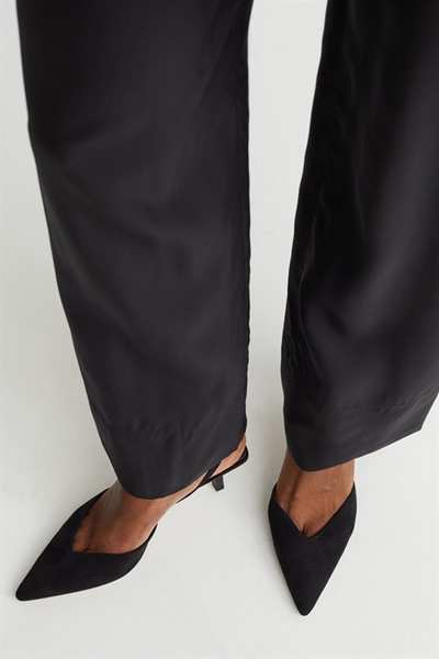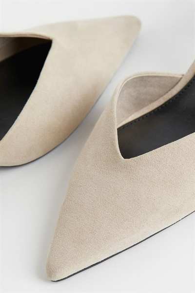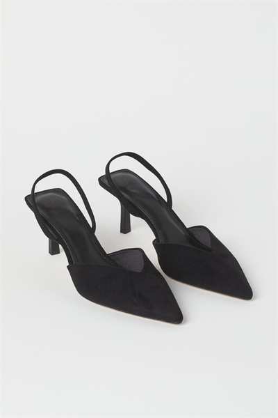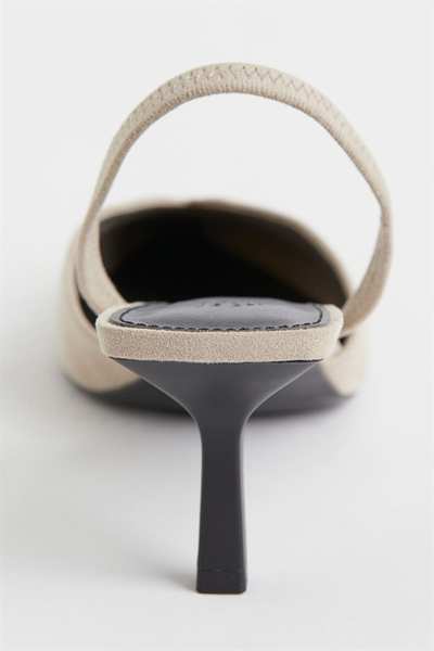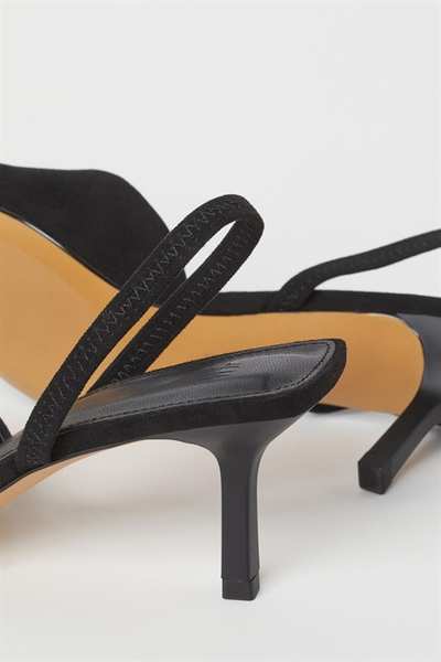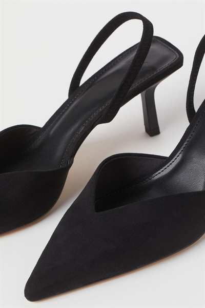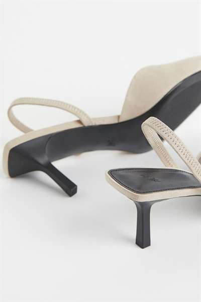 Остроконечные босоножки из искусственной замши с квадратным каблуком, каблуком и узким пяточным ремешком. Подкладка из атласа, стелька из искусственной кожи. Высота каблука 6,5 см.