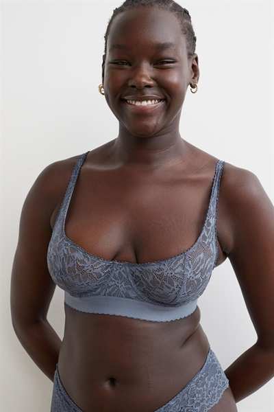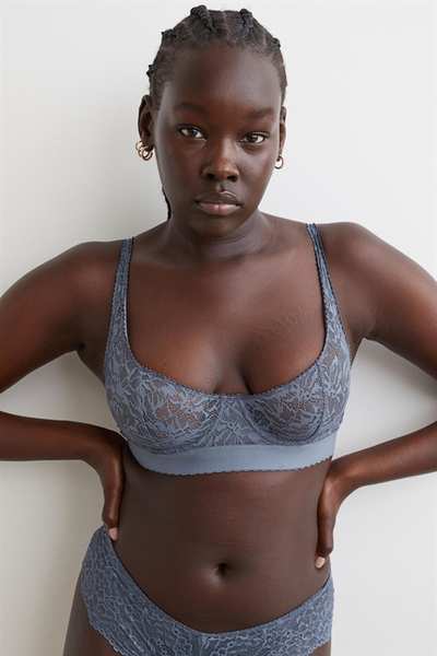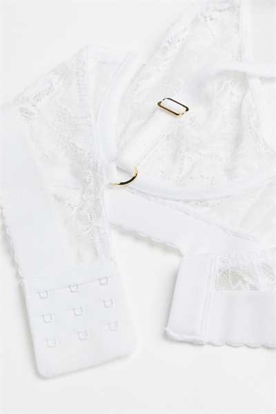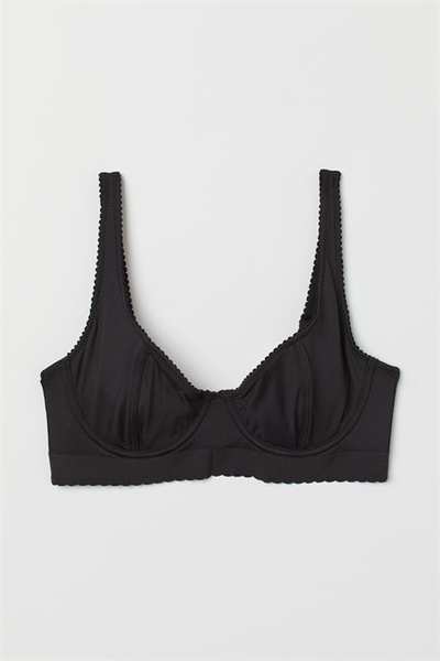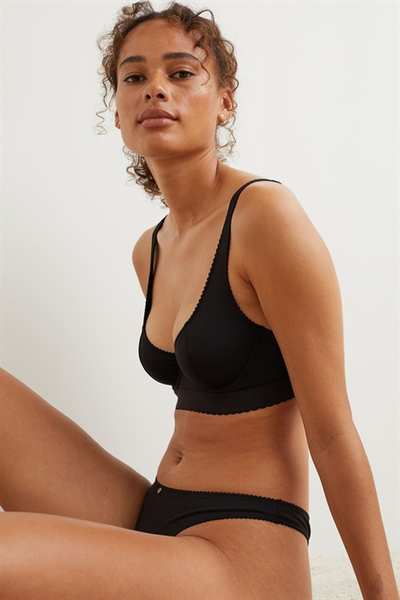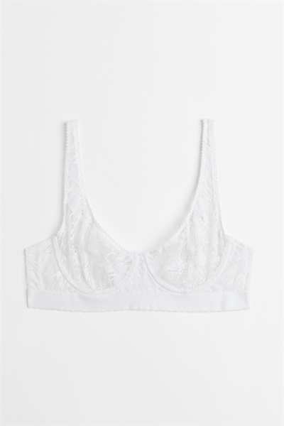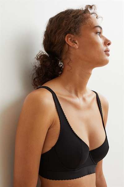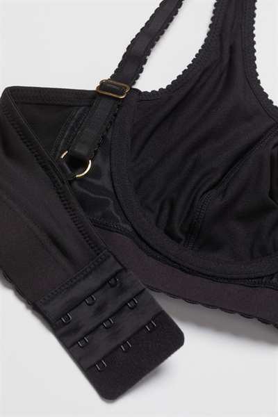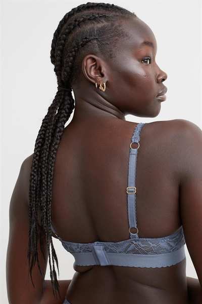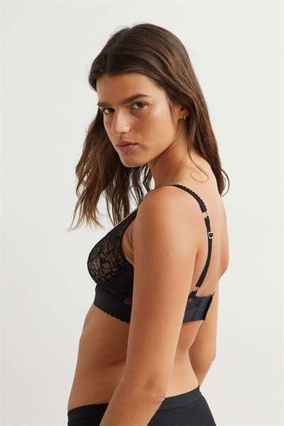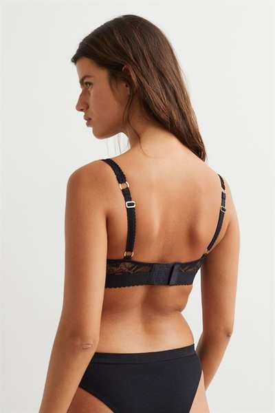 Бюстгальтер без подкладок с регулируемыми бретелями и чашечками на косточках с подкладкой, которые обеспечивают легкую поддержку груди и естественную форму. Застежка на крючок сзади.