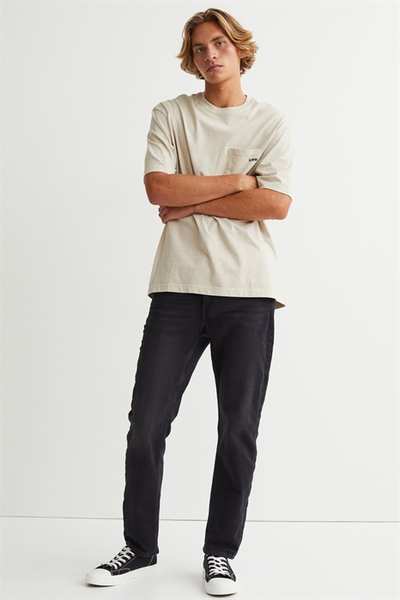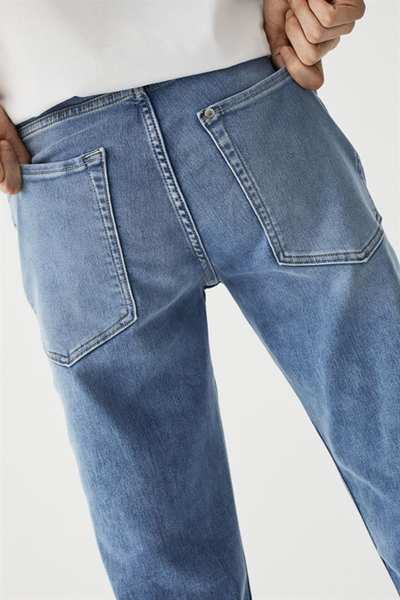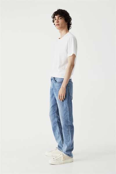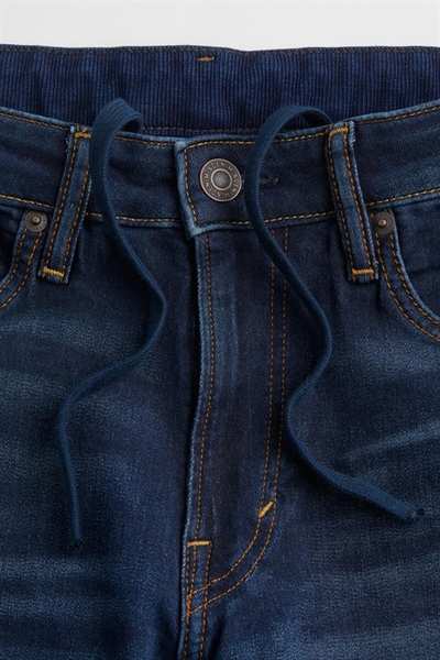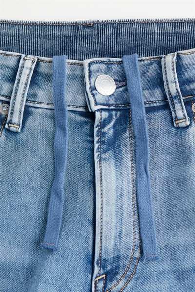 Джоггеры с пятью карманами из эластичного денима из смесового хлопка. Регулярная посадка, эластичный пояс со скрытой завязкой на кулиске и прямые штанины со свободой движений в области бедер и коленей. Молния и пуговица спереди. Гибридная технология Lycra® обеспечивает дополнительную мягкость и комфорт без ущерба для аутентичного вида джинсовой ткани.