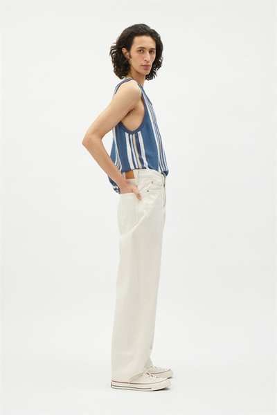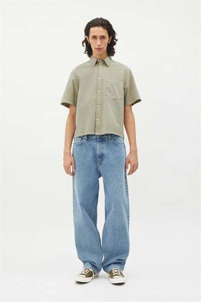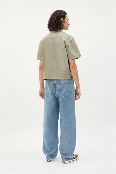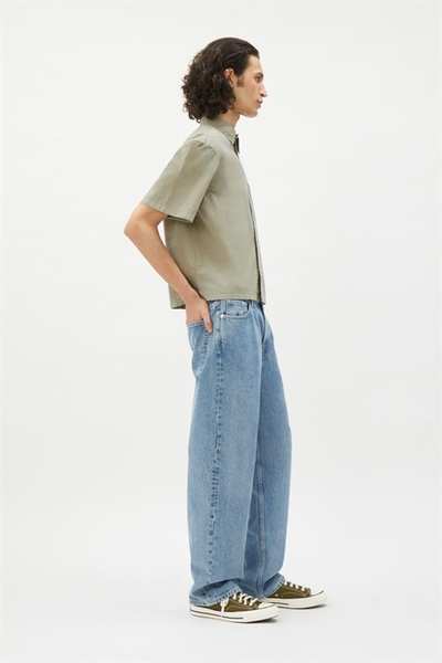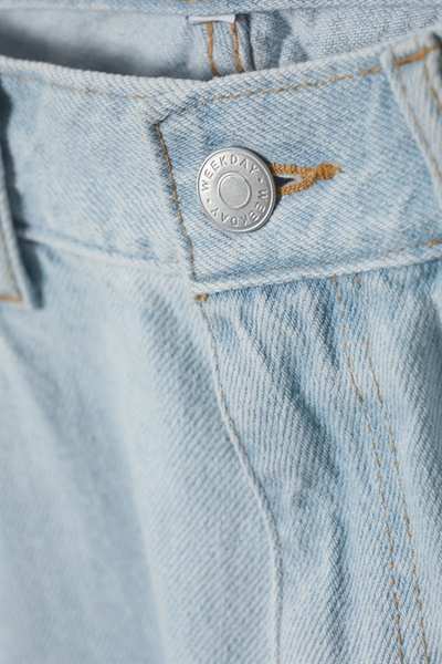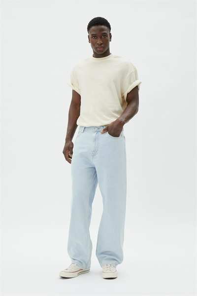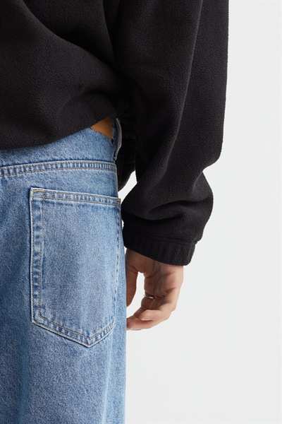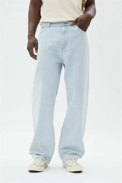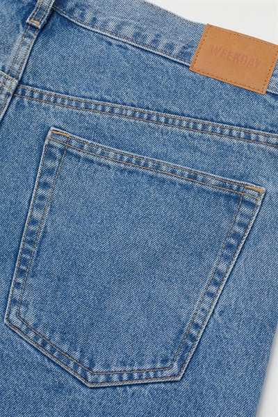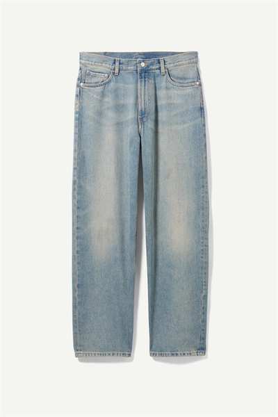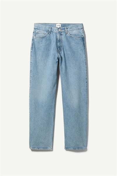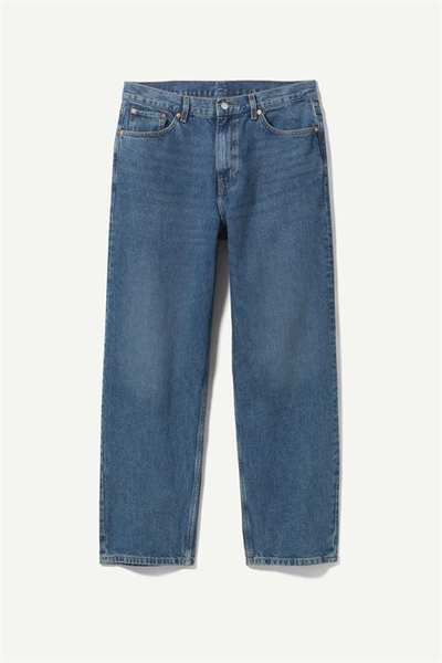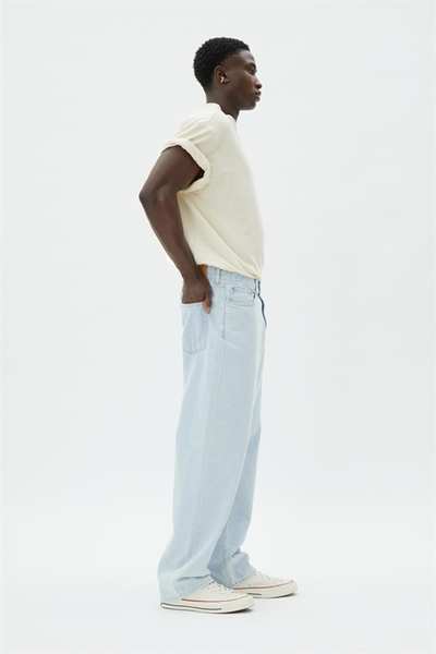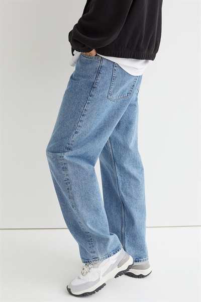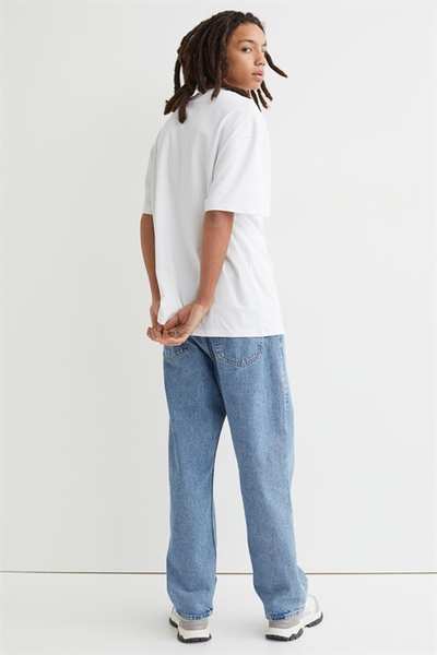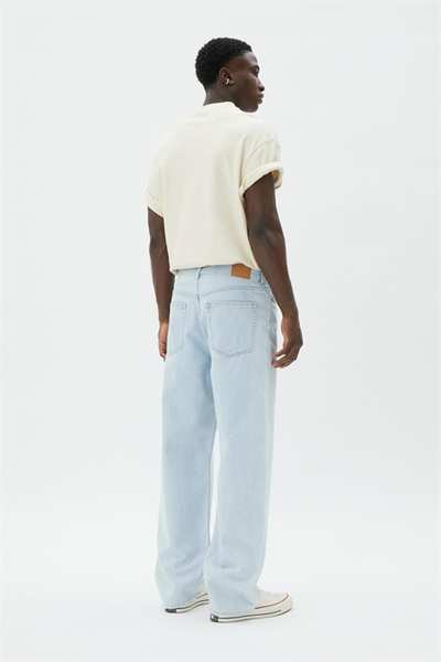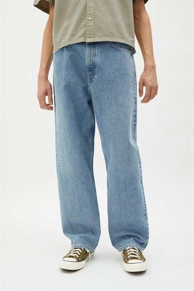 Свободные мешковатые джинсы прямого кроя из прочного денима из органического хлопка с содержанием переработанного хлопка. Брюки сидят на бедрах и характеризуются классическим 5-карманным дизайном и свободной посадкой в ??области ягодиц.Размер 31/32 при обхвате талии 88 см и длине штанины по внутренней стороне 77 см.