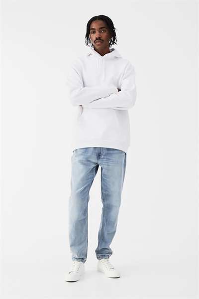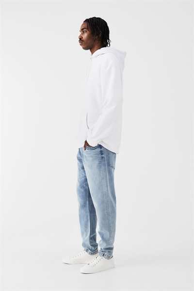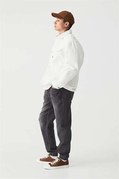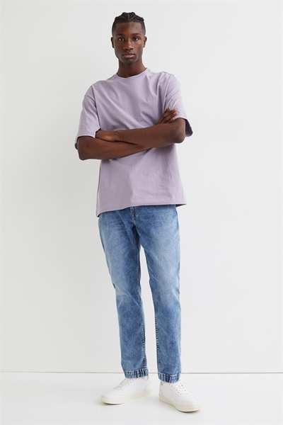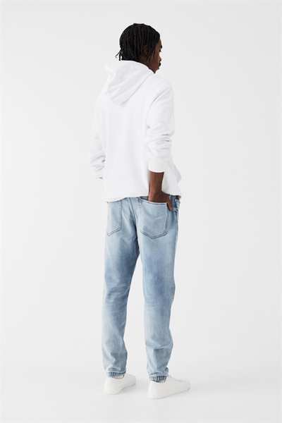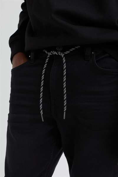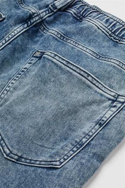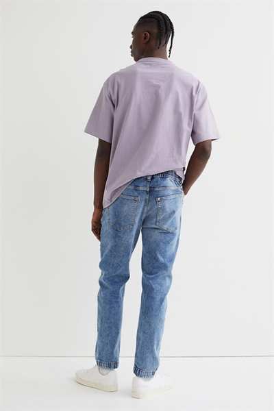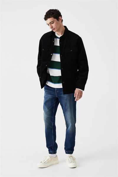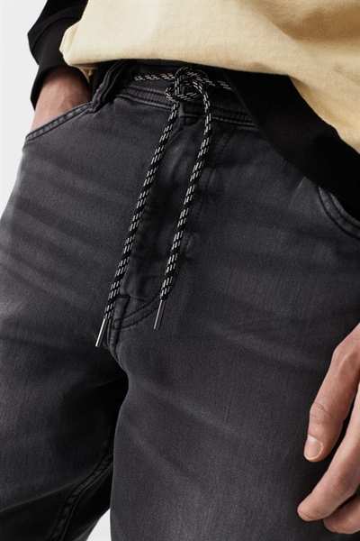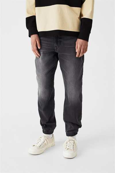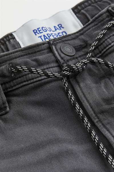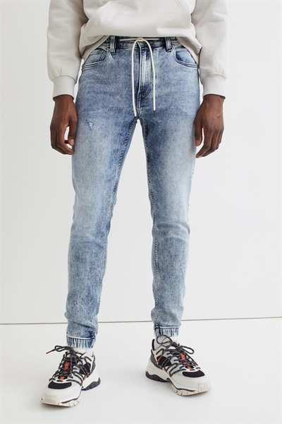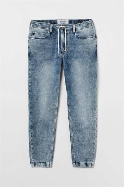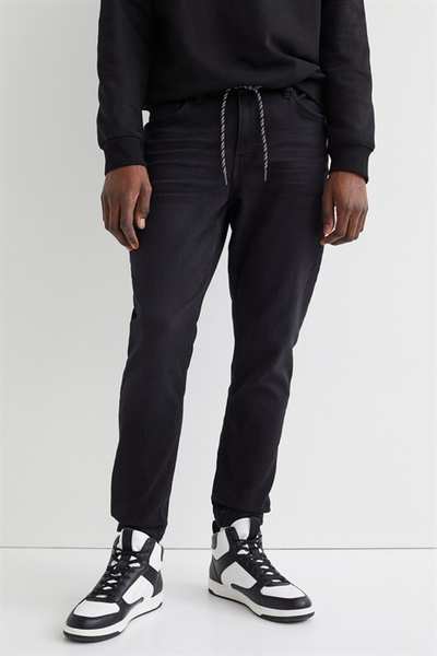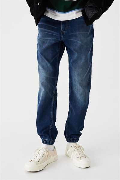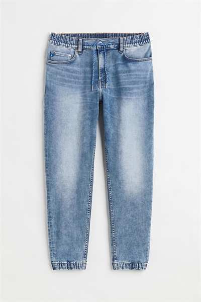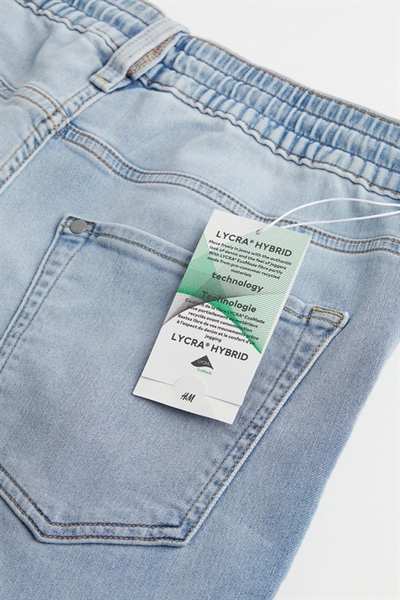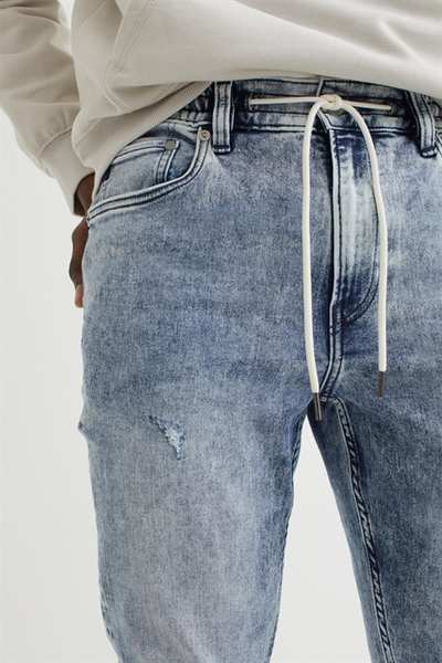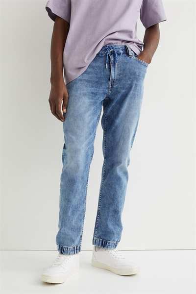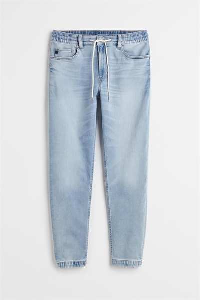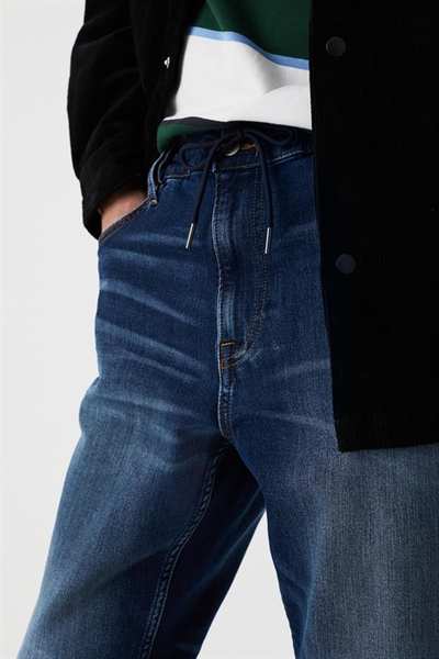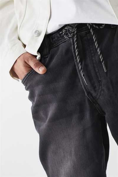 Джоггеры с пятью карманами из эластичного денима со стандартной линией талии. Эти брюки имеют эластичный пояс с кулиской, застежкой-молнией и пуговицей и слегка зауженными штанинами с эластичными манжетами и хорошей свободой движений в области бедер и коленей. Гибридная технология Lycra® обеспечивает дополнительную мягкость и комфорт без ущерба для аутентичного вида джинсовой ткани.