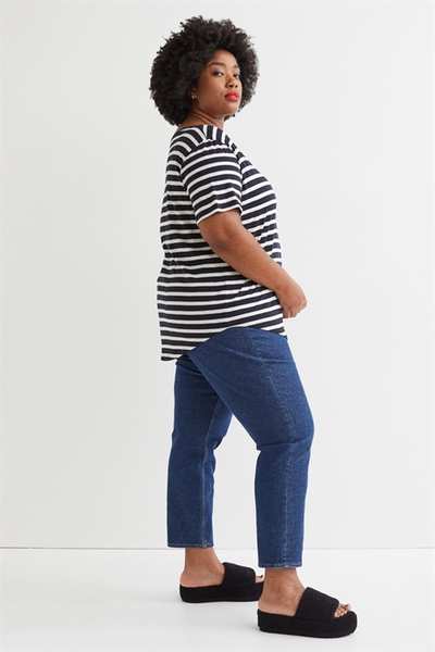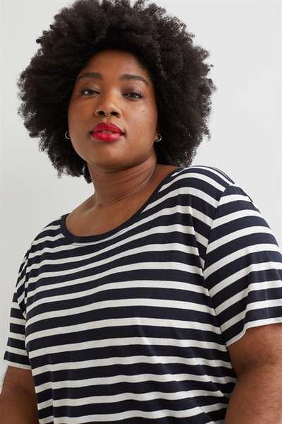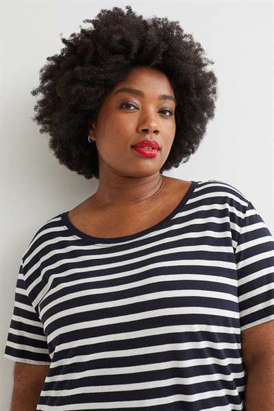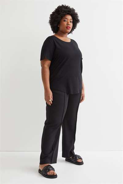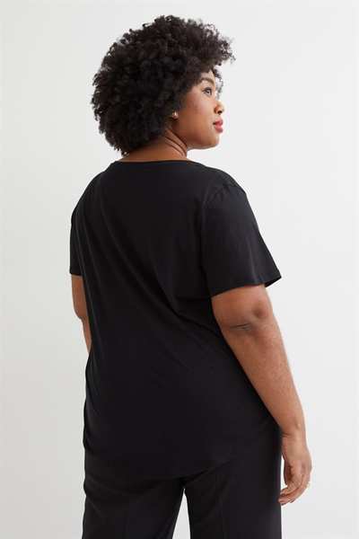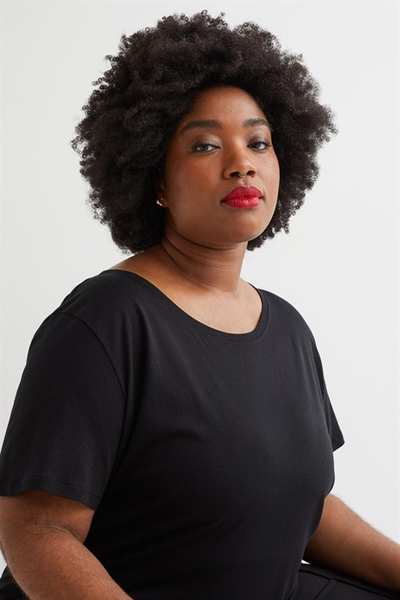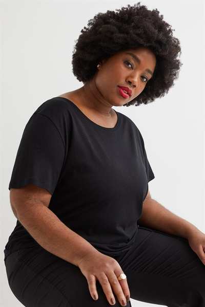 Футболка из мягкой полутонкой смеси модала и хлопка. Модель с широким вырезом горловины и слегка закругленным низом.