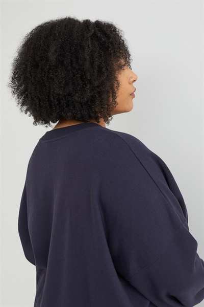 Толстовка оверсайз из смесового хлопка с начесом внутри и принтом спереди. Рубашка имеет круглый вырез горловины с отделкой из резинки, заниженную линию плеча и резинку на манжетах и ??по низу.