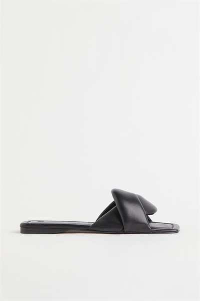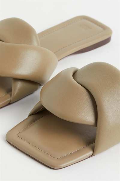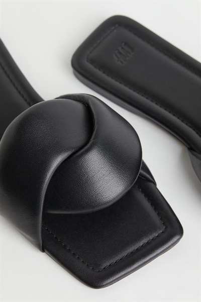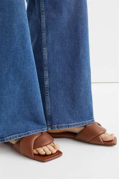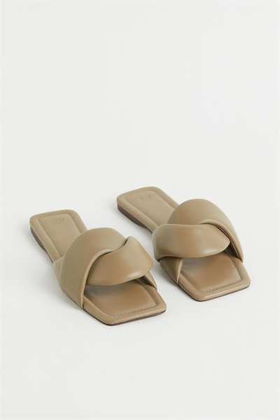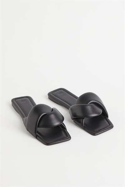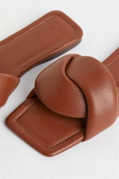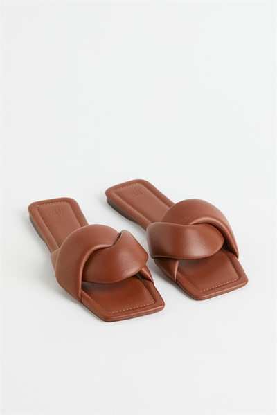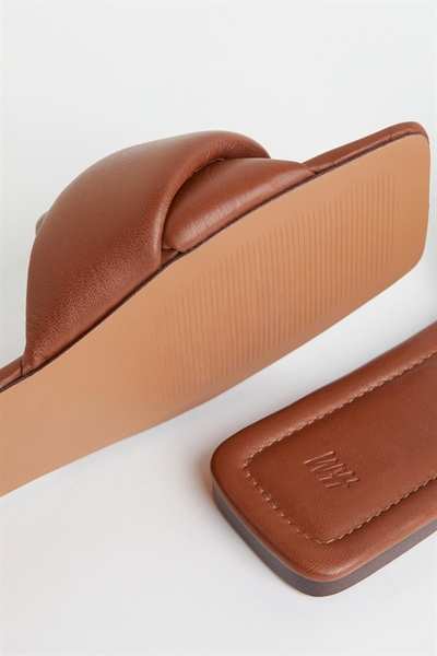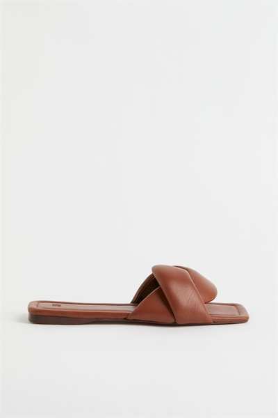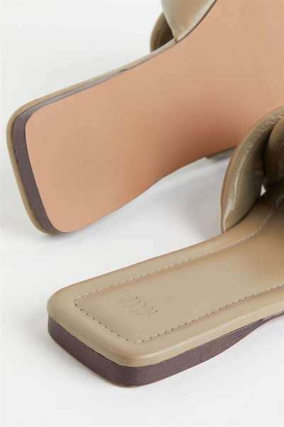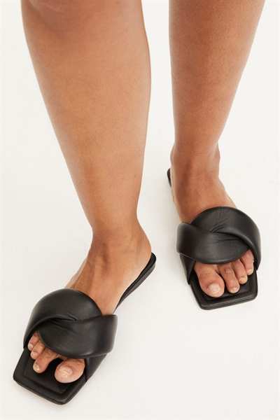 Плоские кожаные мюли с квадратным носком и каблуком и широким перекрещивающимся ремешком на щиколотке. Подкладка и стелька из кожи. Подошва с узорчатой ??нижней стороной. Высота каблука 1,5 см.