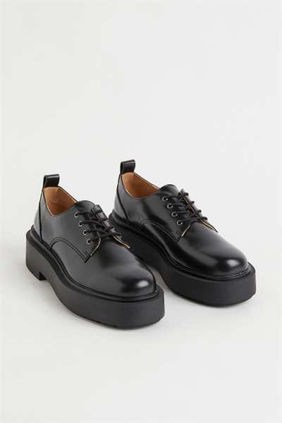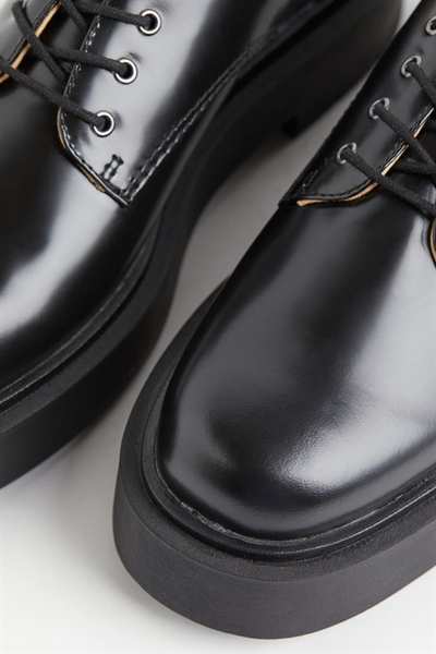 Неустаревающие полуботинки из блестящей кожи на платформе. Модель со шнуровкой и пяточным ремешком. Подкладка из хлопкового холста и кожаная стелька. Прочная ребристая подошва.