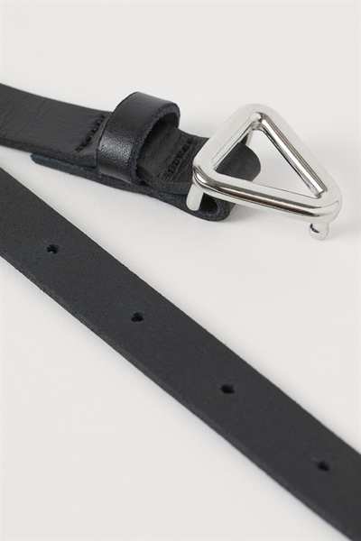Тонкий ремень из мягкой кожи. Ремень имеет треугольную металлическую пряжку с заклепками на пуговицах. Ширина 1,5см.