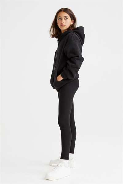 Леггинсы из плотного хлопкового трикотажа с эластичным поясом.