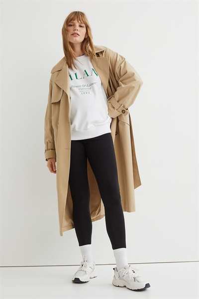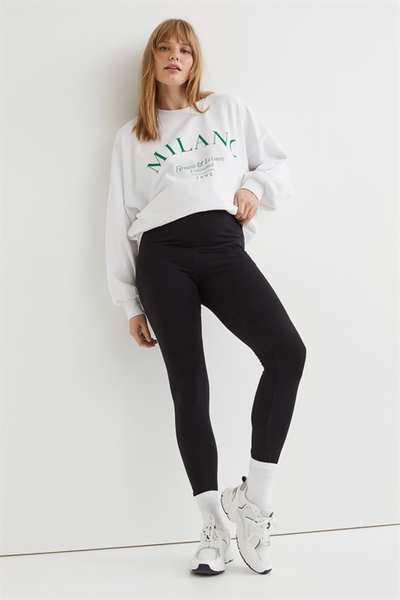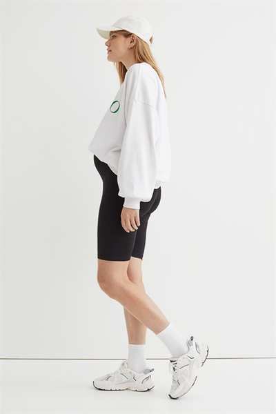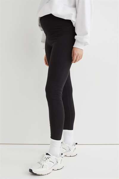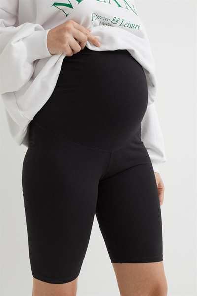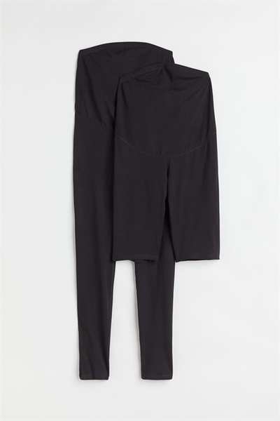 Комплект из леггинсов и велосипедок из мягкого хлопкового трикотажа. Оба с широким поясом для оптимальной посадки на животе.