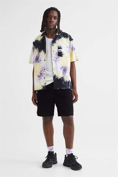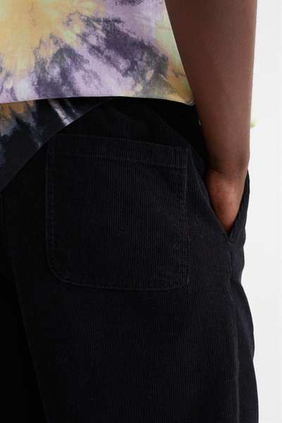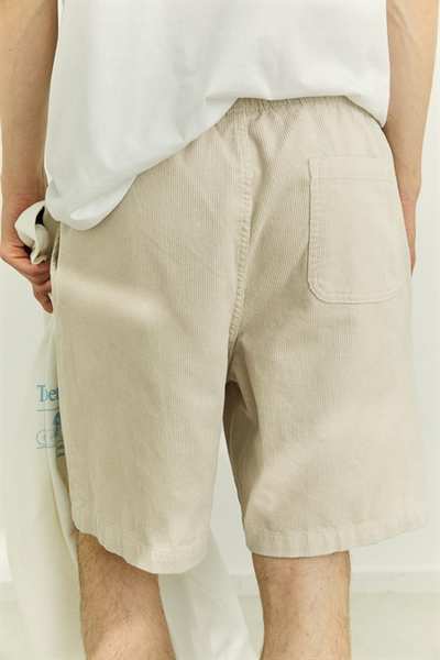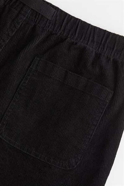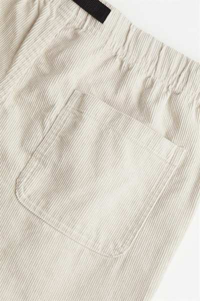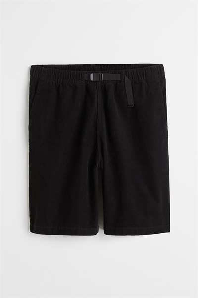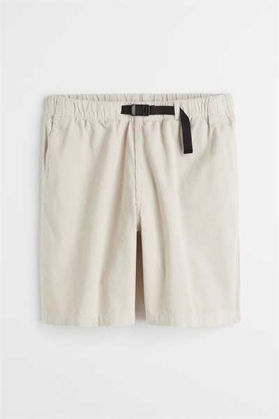 Шорты длиной до колена из мягкого хлопкового вельвета. Свободный крой с потайной резинкой на талии, поясом в крупный рубчик с пластиковой застежкой, боковыми карманами и открытым задним карманом.