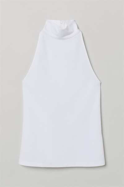 Трикотажный топ из мягкой смесовой вискозы. Топ имеет узкий вырез сверху, двухслойную водолазку и потайную молнию сзади.