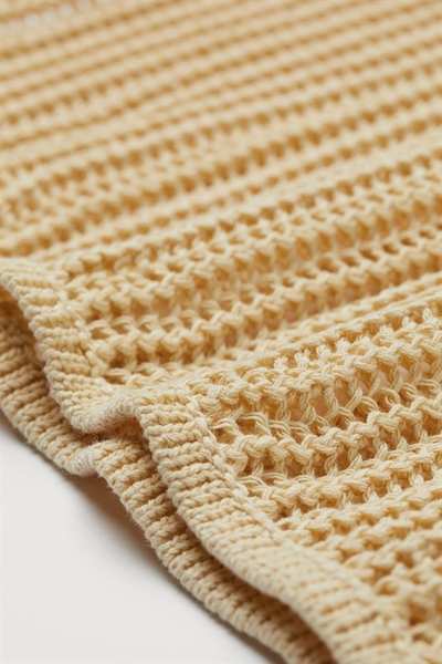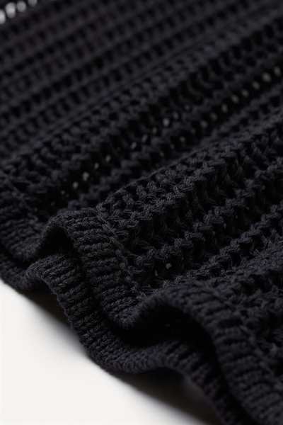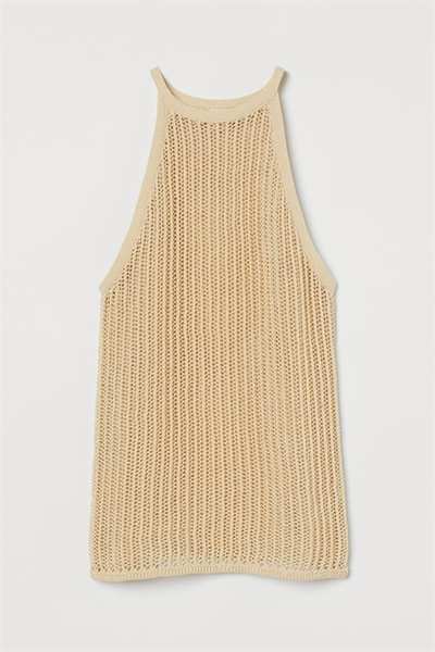 Облегающая вязаная майка из смесового хлопка с эффектом вязания крючком. Узкая модель с круглым вырезом горловины и чуть более глубокими проймами.